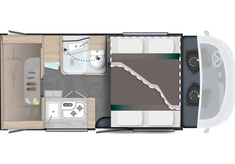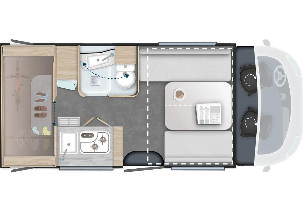 - Dinette umbaubar in einen zusätzlichen Schlafplatz: 140 x 190 cm