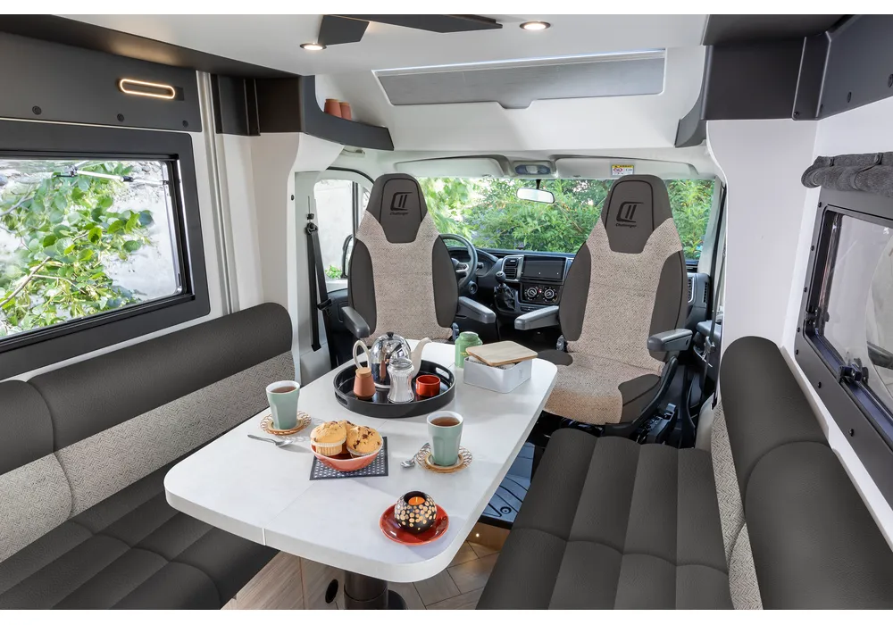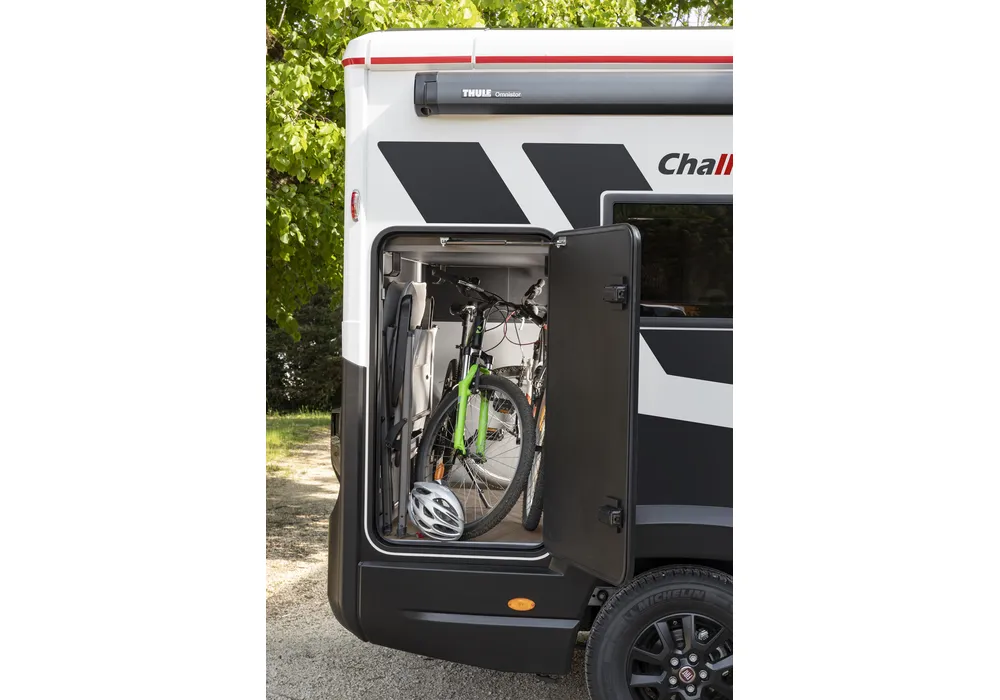 Der Challenger X250 ist ein einzigartiges Wohnmobil mit dem SDR (Smart Dressing Room) System, das den Kleiderschrank in der Garage anpassbar macht. Er bietet einen hohen Laderaum für 1 Tisch und 2 Stühle, der von innen und außen zugänglich ist. In der oberen Position passt er 2 Fahrräder, in der abgesenkten Position wird der Kleiderschrank zum vollwertigen Raum. Ein Wohnmobil, das Funktionalität und Vielseitigkeit vereint.