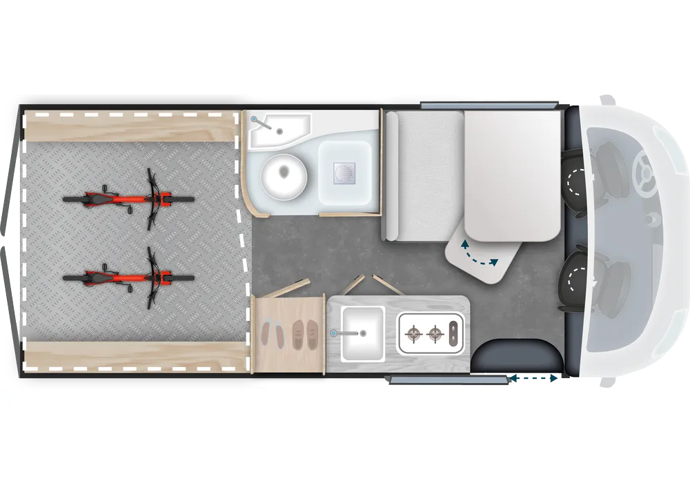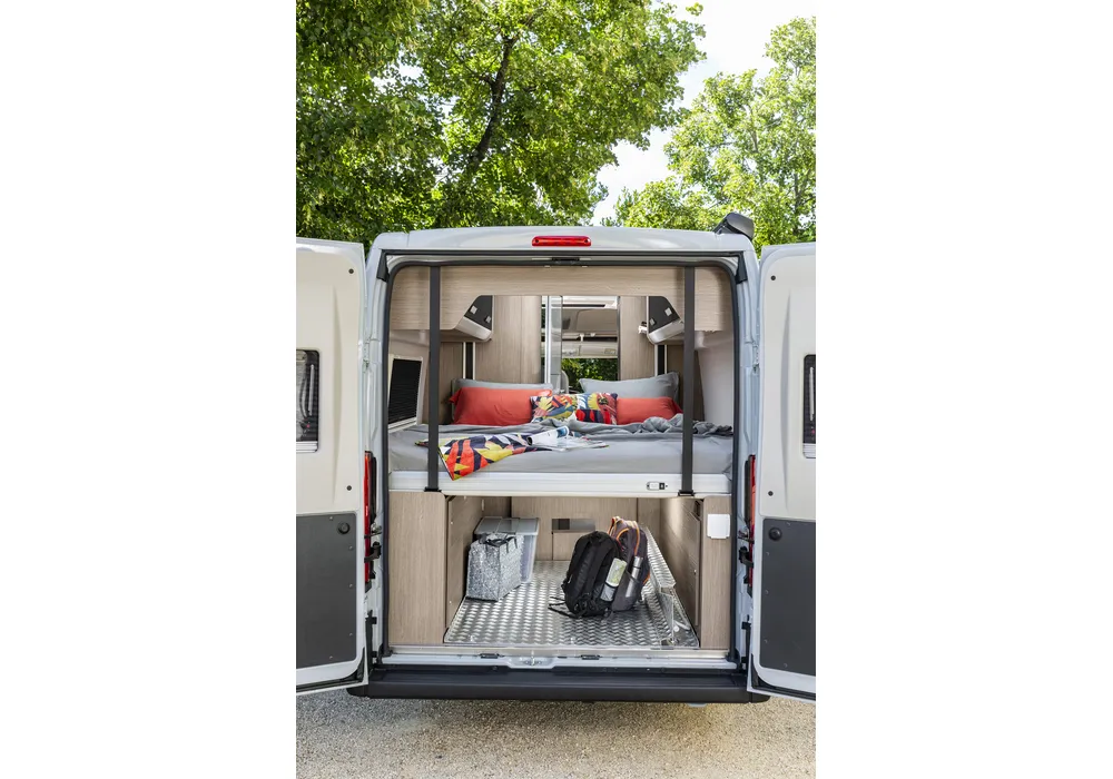 Der Kastenwagen Challenger V210 ist die perfekte Wahl für Abenteurer, die Komfort und Funktionalität suchen. Mit einem geräumigen Hubbett (190 x 190cm) können Sie bequem schlafen und sich ausruhen, während eine Maxigarage ausreichend Platz für alle Ihre Ausrüstungen bietet.
